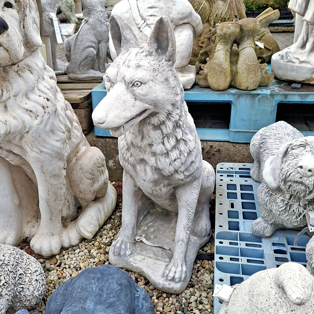Gartenstatue eines belgischen Schäferhundes. (€150,-) Bei Gartendekoration José in Echt, Limburg, Niederlande. Für alle Ihre Gartenstatuen, Brunnen, Ziertöpfe und Pflanzen.